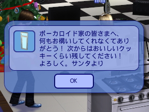 イヤミったらしいサンタの思い出に、レン君の部屋に飾っておこうっと。