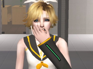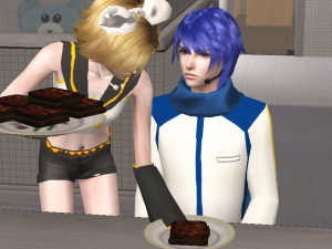 リン手作りのグリルドチーズを食べるミクに頬袋が。